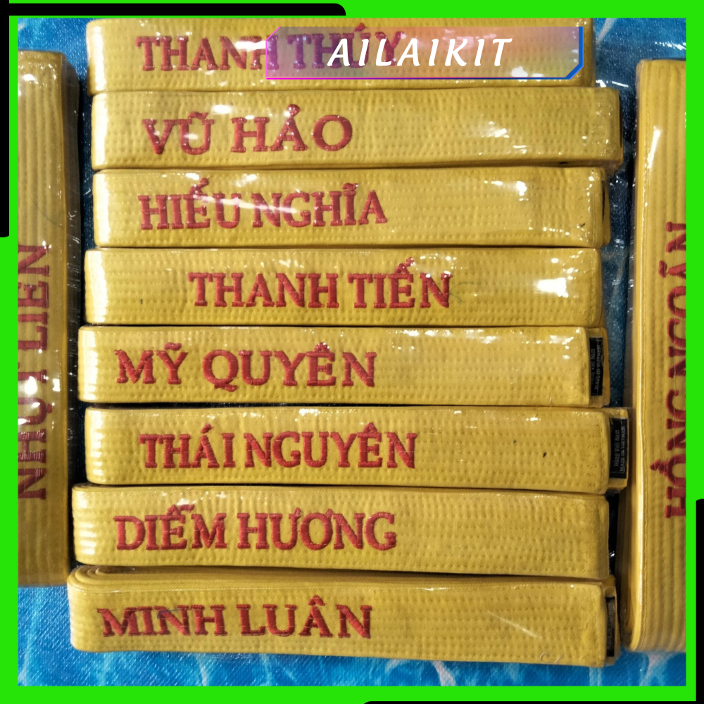 - Là loại đai chất lượng cao, giá cả đi đôi với chất lượng. Nội dung thêu trên đai được tùy chỉnh theo ý của khách hàng, màu đai theo quy định của các môn võ.